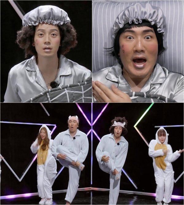 특히 ‘장르만 코미디’ 금주 방송에서는 신곡 ‘양 한 마리’의 처음이자 마지막 무대가 공개될 예정이라고 해 관심을 높인다. 이와 함께 공개된 스틸 속 억G&조G는 수면 모자와 내추럴한 잠옷, 실내 슬리퍼까지 수면에 최적화된 패션으로 무대에 올라 시선을 강탈한다. 더욱이 자신의 한쪽 다리를 붙잡고 마치 아이를 재우 듯 둥가둥가 흔드는 두 사람의 춤사위가 포착돼, 무대에 대한 기대감을 더욱 고조시킨다.