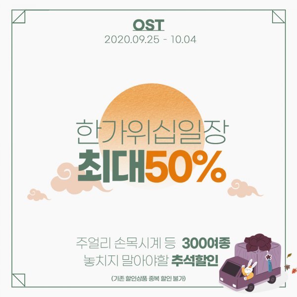 이랜드의 주얼리 브랜드 오에스티가 10월 4일까지 ‘한가위 십일장’을 진행한다.