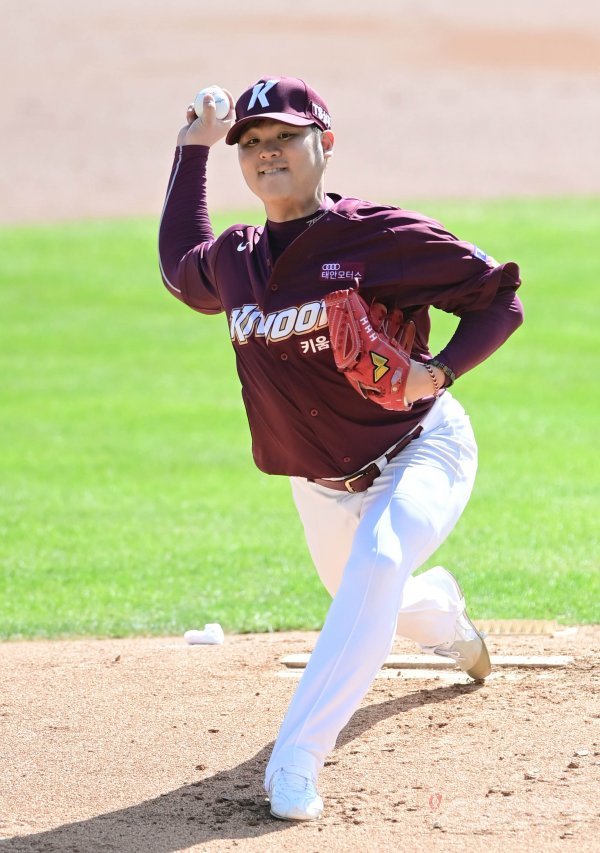 27일 서울 잠실야구장에서 ‘2020 신한은행 SOL KBO리그’ 두산 베어스와 키움 히어로즈의 더블헤더 1차전 경기가 열렸다. 1회말 키움 한현희가 마운드에 올라 역투하고 있다.