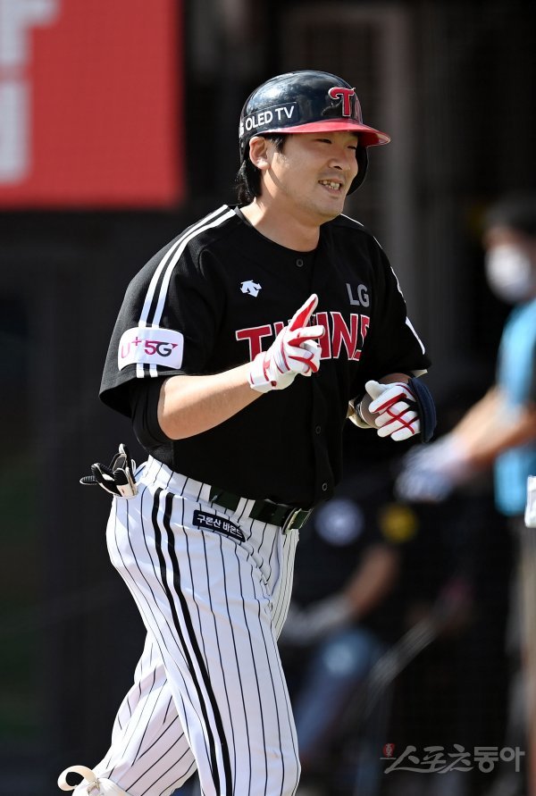 27일 수원 KT위즈파크에서 ‘2020 신한은행 SOL KBO 리그’ LG 트윈스와 KT 위즈 경기가 열렸다. 2회초 무사 1루 LG 이형종이 좌월 투런 홈런을 날리고 그라운드를 돌아 홈인해 기뻐하고 있다. 수원 | 김종원 기자 won@donga.com