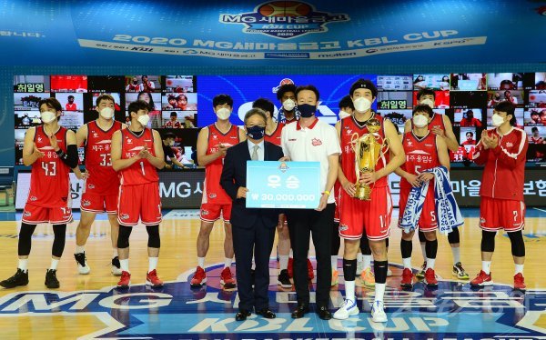 27일 전라북도 군산 월명체육관에서 열린 ‘2020 MG새마을금고 KBL CUP’ 서울 SK와 고양 오리온의 결승 경기에서 오리온이 SK를 94-81로 누르고 초대 대회 우승의 영광을 차지했다.