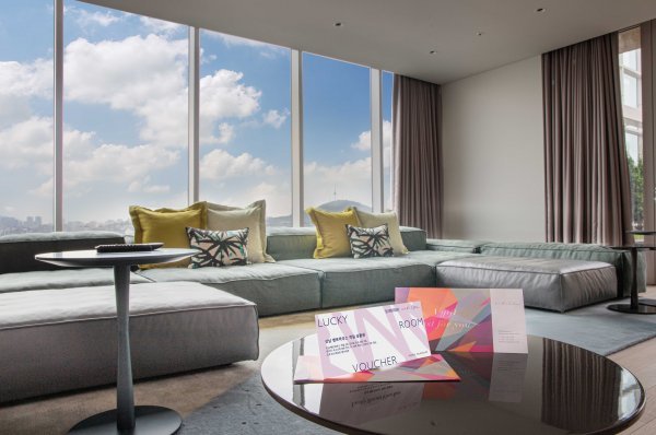 서울 압구정의 하얏트 체인 라이프스타일 호텔 안다즈 서울 강남은 최대 1000만원 이상의 혜택을 담은 개관 1주년 기념 ’럭키 룸 바우처’를 10월8일 100매 한정으로 판매한다. 펜트하우스 등 당첨 객실 숙박+부가 혜택