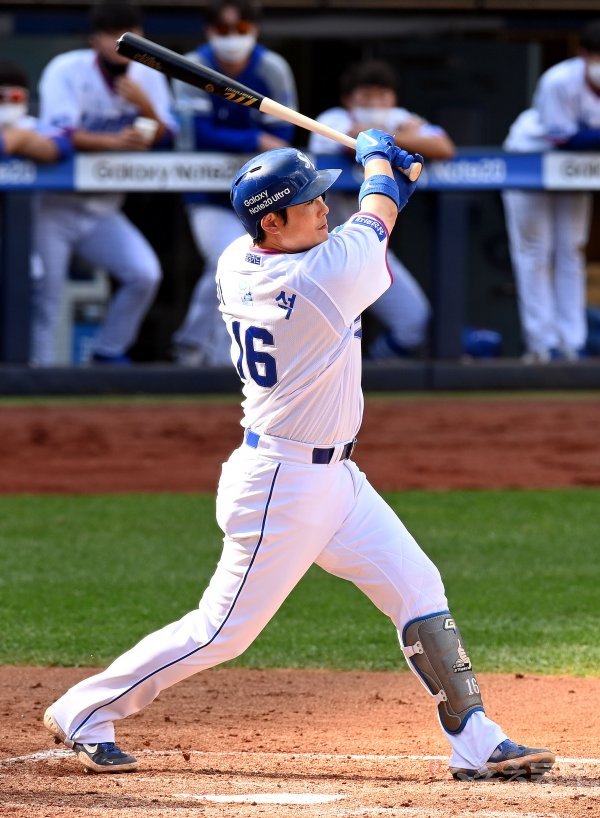 30일 대구 삼성라이온즈파크에서 ‘2020 신한은행 SOL KBO리그’ 삼성 라이온즈와 kt 위즈의 경기가 열렸다. 3회말 2사 만루에서 삼성 이원석이 2타점 역전 적시타를 날리고 있다.
