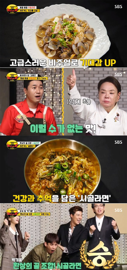 정엽의 조언을 받아 박기웅이 선보인 레시피는 시래기와 집 된장, 골뱅이를 이용한 시골라면. 시골라면을 시식한 김수미는 다른 셰프의 라면까지 차지, 먹방을 펼쳤고, 심사위원들은 만장일치로 시골라면의 승리를 결정했다.
