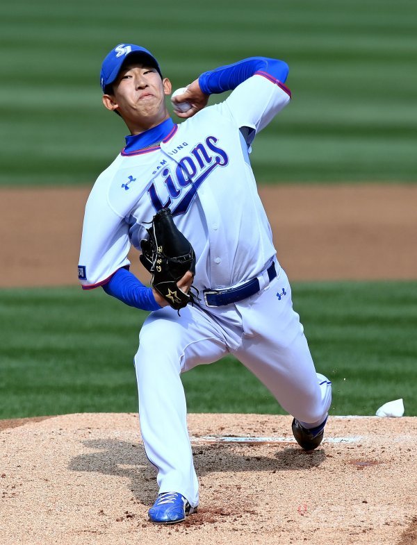 1일 대구 삼성라이온즈파크에서 ‘2020 신한은행 SOL KBO리그’ 삼성 라이온즈와 kt 위즈의 경기가 열렸다. 삼성 선발투수 허윤동이 힘차게 볼을 던지고 있다.