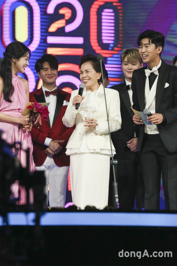 가수 이미자가 1일 오후 경기도 고양시 일산 킨텍스 7홀에서 개최된 TV조선 ‘2020 트롯 어워즈’에서 수상을 하고 있다.