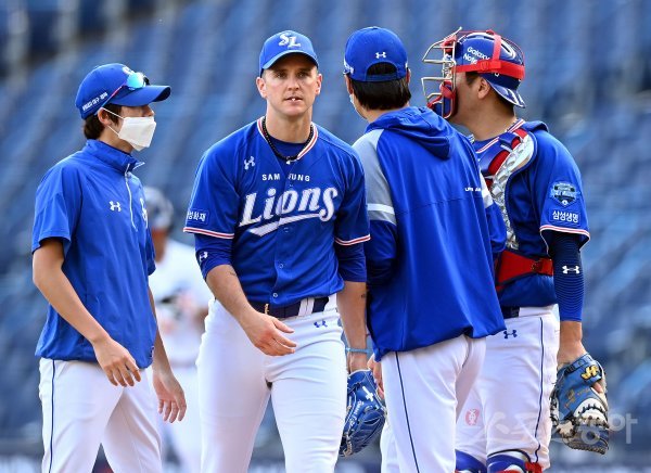 3일 창원 NC파크에서 ‘2020 신한은행 SOL KBO리그’ NC 다이노스와 삼성 라이온즈의 DH 1차전 경기가 열렸다. 6회말 2사 1, 2루에서 NC 박석민에게 1타점 적시타를 허용한 삼성 선발 뷰캐넌이 교체되고 있다.