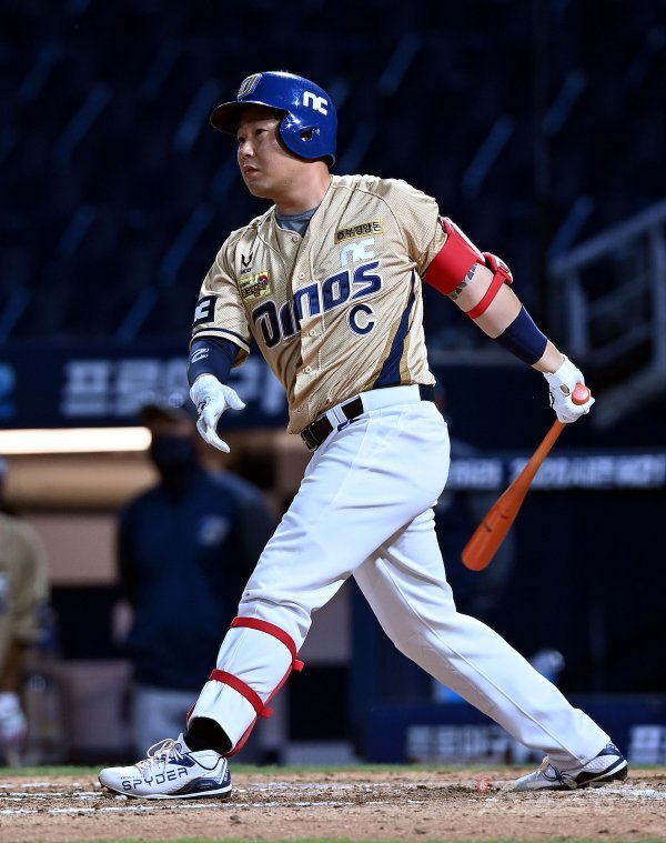 3일 창원 NC파크에서 ‘2020 신한은행 SOL KBO리그’ NC 다이노스와 삼성 라이온즈의 DH 2차전 경기가 열렸다. 6회말 2사에서 NC 양의지가 2루타를 날리고 있다.
