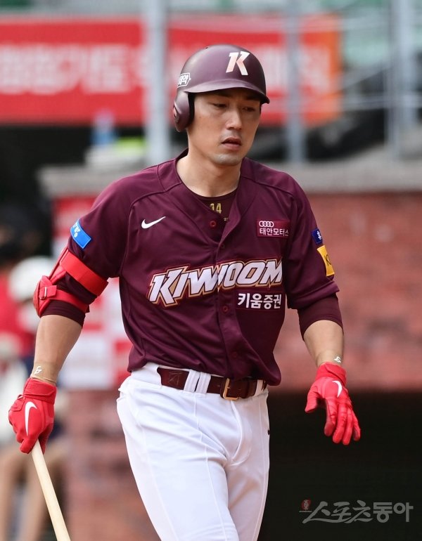 4일 인천 SK행복드림구장에서 ‘2020 신한은행 SOL KBO리그’ SK 와이번스와 키움 히어로즈의 경기가 열렸다. 3회초 1사 2루 키움 서건창이 삼진을 당한 뒤 더그아웃으로 향하고 있다.