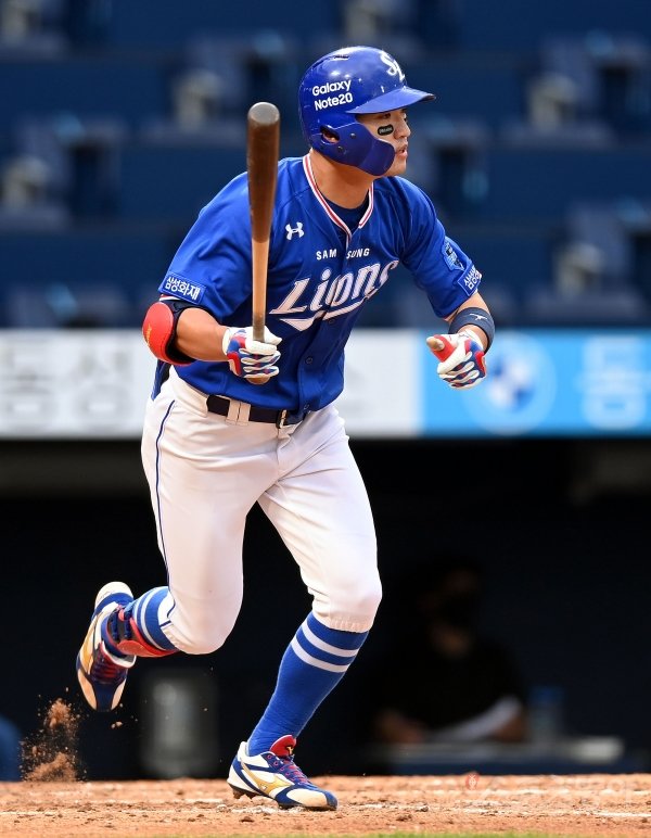 4일 창원 NC파크에서 ‘2020 신한은행 SOL KBO리그’ NC 다이노스와 삼성 라이온즈의 경기가 열렸다. 7회초 1사 2, 3루에서 삼성 박해민이 1타점 적시타를 날리고 있다.