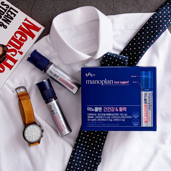 마노플랜은 남성 건강 고민의 마침표라는 컨셉을 내세운 남성 건강 브랜드이며, 첫 번째 제품은 ‘마노플랜 간건강&활력’이다. 업무, 음주, 스트레스로 건강을 챙기기 힘든 남성들을 위한 제품으로 상단부는 밀크씨슬캡슐, 하단부는 활력 비타민 드링크 구조로 이뤄졌다. 특히 하단부의 드링크에는 비타민 B군을 기본으로 홍삼농축액, L-아르지닌을 포함한 8종의 부원료에 정상적인 면역기능을 위한 아연의 1일 영양성분기준치인 8.5mg도 함께 함유되어 있다.