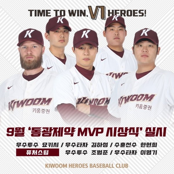 ‘9월 MVP’에는 1군 우수투수에 에릭 요키시, 우수타자에 김하성, 수훈선수에 한현희가 각각 선정됐다.