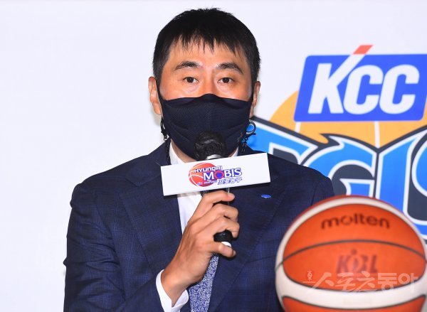 6일 서울 송파구 방이동 올림픽파크텔에서 열린 ‘2020-2021 현대모비스 프로농구 개막 미디어데이’에서 서울 삼성 이상민 감독이 인사말을 하고 있다.