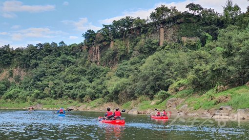 파란 하늘과 맑은 물, 우뚝 솟은 기암절벽이 한 폭의 그림처럼 어우러진 절경에서 즐기는 한탄강 카약체험. 스포츠동아DB