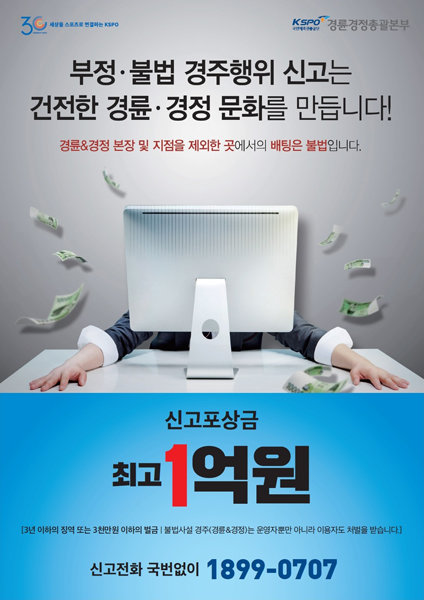 국민체육진흥공단(이사장 조재기) 기금조성총괄본부는 불법 사설경주를 효과적으로 단속하고 위험성을 홍보하기 위해 모바일 경륜경정 불법신고센터를 개설해 운영하고 있다. 카카오톡 플러스 친구 채널 ‘경륜경정 불법신고센터’를 통해 불법 사설경주 신고 제보자와 1:1 실시간 채팅을 실시해 불법 사이트를 신고 받는다. 카카오톡 상단 검색창에 ‘경륜경정 불법신고센터’를 검색하면 추가할 수 있으며, 신고는 365일 24시간 가능하다. 부정·불법 경륜경정 행위를 인지하고 신고하게 되면 최대 1억 원을, 인터넷으로 운영되는 사설 경륜경정 사이트를 신고할 경우 최대 10만 원(건당)의 포상금을 지급한다. 경륜경정 부정·불법 행위 신고와 포상금에 대한 자세한 사항은 기금조성총괄본부, 경륜, 경정 홈페이지를 참고하면 된다.