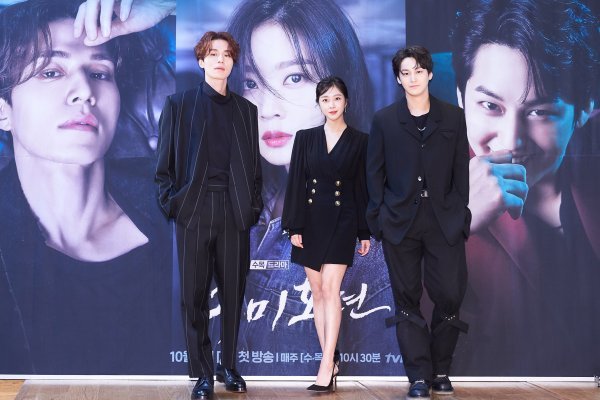 배우 이동욱, 조보아, 김범(왼쪽부터)이 7일 오후 tvN 드라마 \'구미호뎐\' 온라인 제작발표회에 참석해 포즈를 취하고 있다.