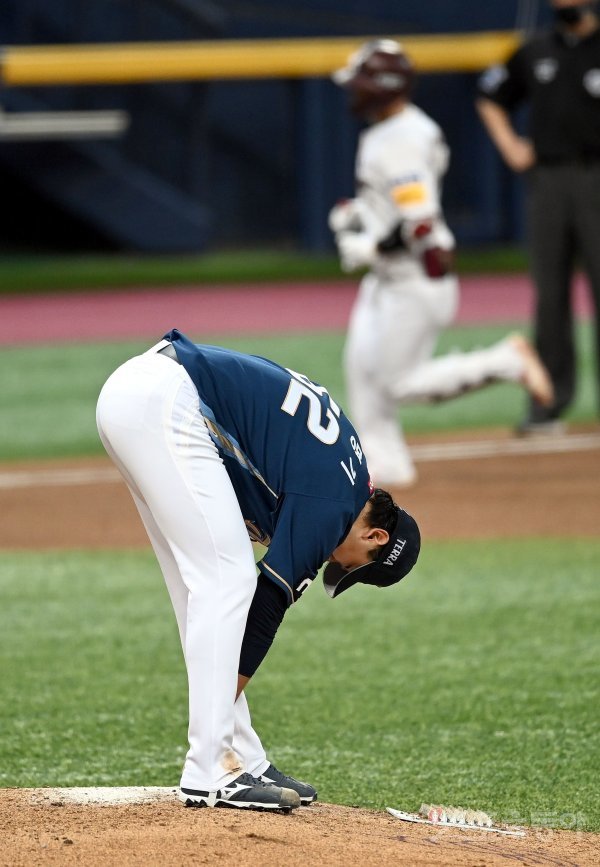 NC 선발 송명기가 5회말 2사 키움 김하성에게 좌월 솔로 홈런을 허용하고 있다.