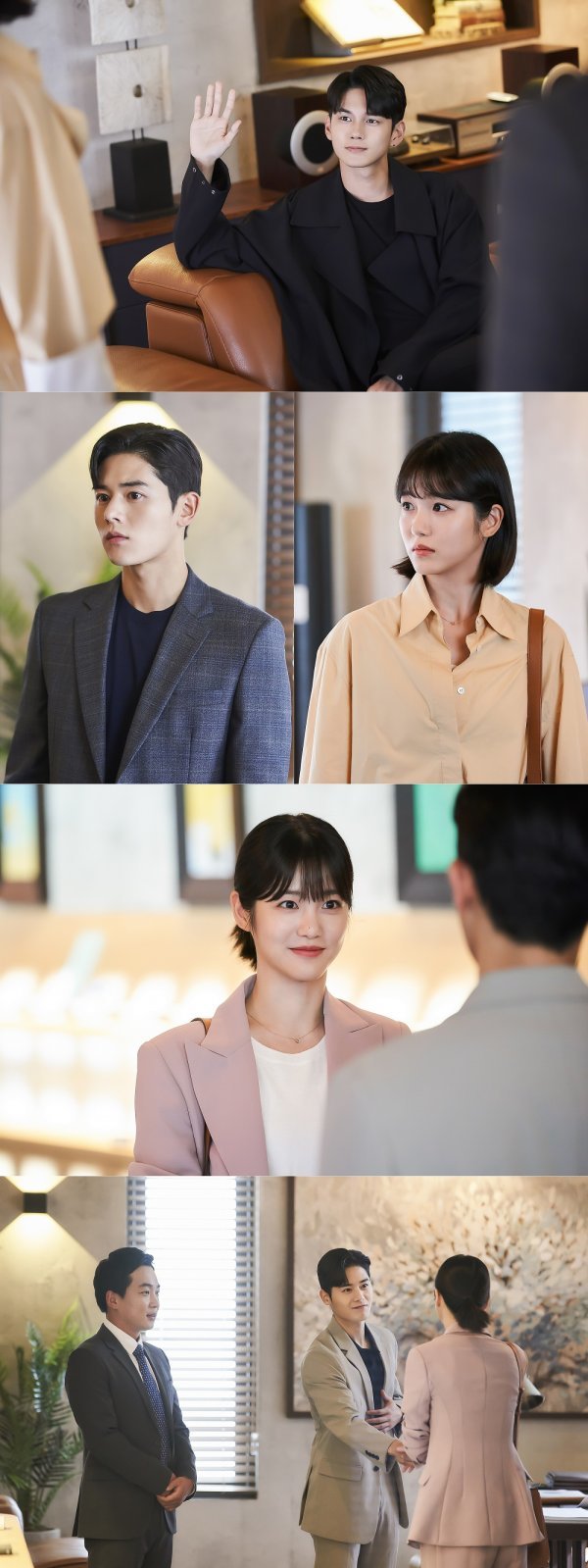JTBC 금토드라마 ‘경우의 수’(연출 최성범, 극본 조승희) 제작진은 8일 온준수(김동준 분)의 출판사에서 재회한 이수(옹성우 분)와 경우연(신예은 분)의 모습을 포착했다. 제주도에서의 입맞춤 이후 다시 만난 이수, 경우연의 모습이 흥미를 자극한다. 여기에 두 사람과 얽히기 시작한 온준수까지 포착돼 호기심을 불러일으킨다.