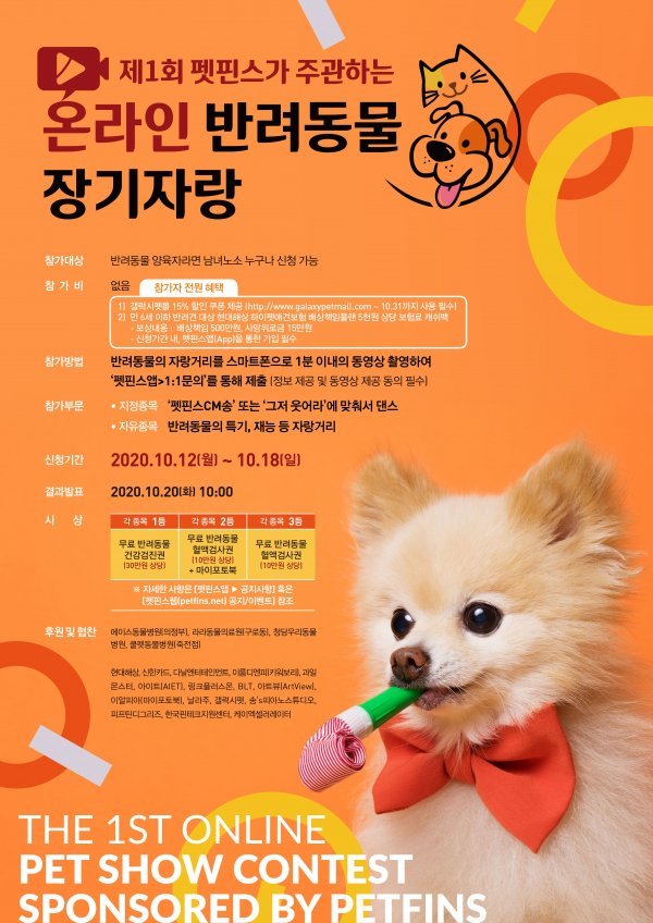 펫핀스 관계자는 “온라인 반려동물 장기자랑 대회가 반려동물들의 넘치는 끼를 뽐낼 수 있는 온라인 무대이자, 반려인과 반려동물이 함께 어려운 시기를 극복하는 비언어적 소통과 화합의 장이 될 것으로 기대한다”고 소감을 전했다.