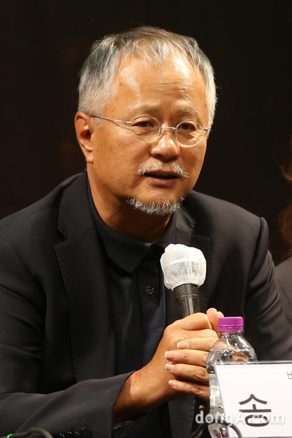 배우 겸 공연 제작자 송승환이 8일 오후 서울 중구 정동극장에서 열린 연극 \'더 드레서(THE DRESSER)\'제작발표회에 참석해 인사말을 하고 있다.