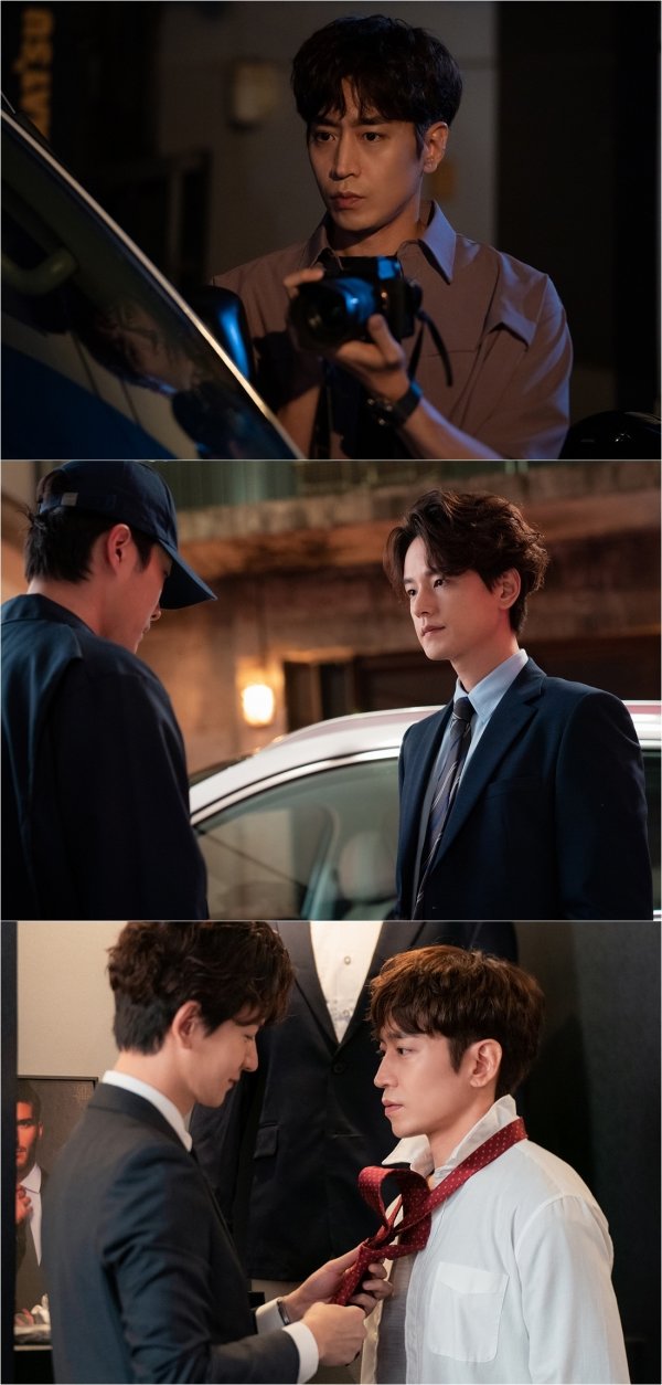 그런 가운데 공개된 사진 속, 전지훈과 데릭 현의 아슬아슬한 분위기가 ‘숨멎’ 긴장감을 자아낸다. 전지훈의 날카로운 시선 끝에 데릭 현이 있다. 젠틀한 외교공무원의 얼굴을 지운 데릭 현은 서늘하기까지 하다. 그의 일거수일투족을 집요하게 쫓는 전지훈의 모습도 흥미롭다. 의미심장한 두 사람의 모습 뒤로 이어진 사진은 궁금증을 더욱 고조시킨다. 무슨 일인지 전지훈의 넥타이를 매주고 있는 데릭 현의 얼굴엔 묘한 미소가 띄워져 있다. 그런 데릭 현의 속내를 꿰뚫어 보듯 뜨겁게 응시하는 전지훈의 대비가 짜릿한 긴장감을 유발한다. 파헤치려는 자와 숨기려는 자. 두 남자의 뜨거운 한판 승부가 기다려진다.