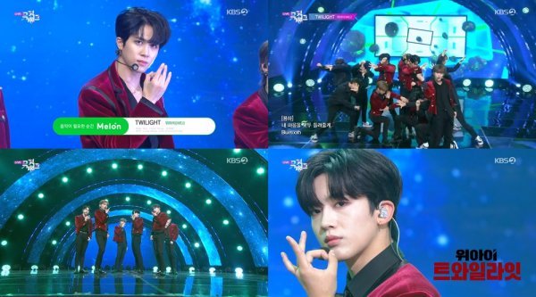 위아이(장대현, 김동한, 유용하, 김요한, 강석화, 김준서)는 9일 오후 방송된 KBS2 ‘뮤직뱅크’에서 첫 번째 미니앨범 ‘IDENTITY : First Sight(아이덴티티 : 퍼스트 사이트)’의 데뷔 타이틀곡 ‘트와일라잇(TWILIGHT)’ 무대를 선보였다.