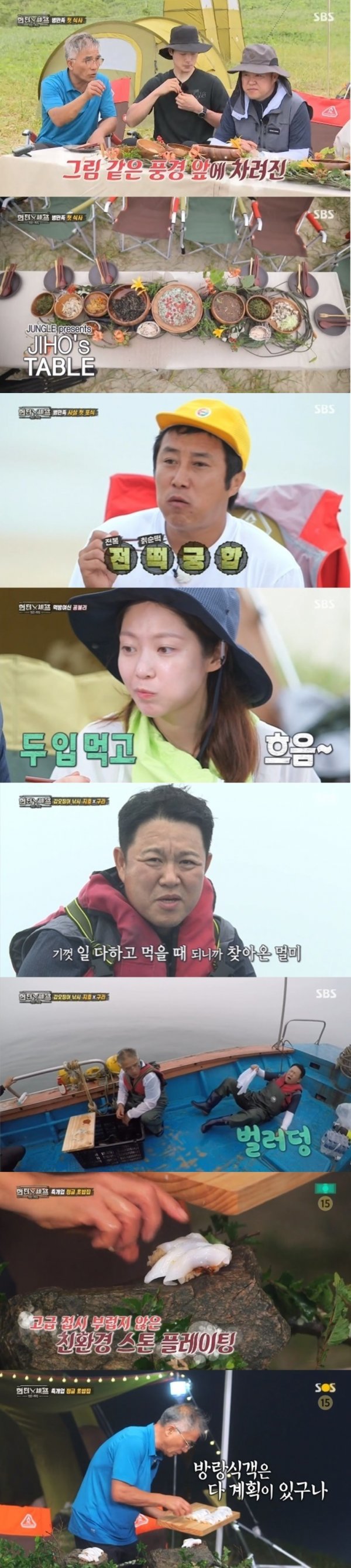 이날 방송에서는 ‘방랑식객’ 임지호의 화려한 ‘자연 요리’ 향연이 펼쳐져 눈길을 끌었다. 멤버들이 직접 잡은 각종 식재료로 눈과 입까지 즐겁게 만든 임지호의 요리에 이용진은 "강남 셰프들 문 닫아야겠다. 이걸 한 시간 만에 뚝딱 하시는 게 말이 안 된다"며 놀라워했다. 임지호와 환장의 케미를 선보였던 김구라 역시 ”대충 \'건강 음식이겠구나\' 했는데 의심했던 거 죄송하다“고 덧붙여 웃음을 자아냈다.