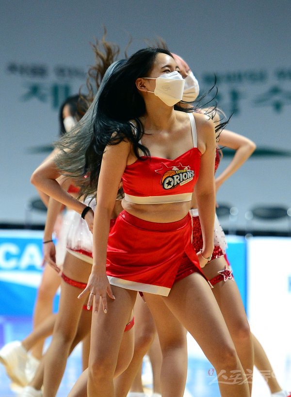 11일 경기도 고양체육관에서 열린 ‘2020-2021 현대모비스 프로농구’ 전주KCC와 고양오리온 경기에서 치어리더가 공연을 펼치고 있다.