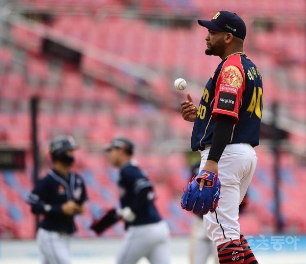 11일 경기도 수원 KT위즈파크에서 ‘2020 신한은행 SOL KBO리그’ KT 위즈와 두산 베어스의 경기가 열렸다. 5회초 2사 2, 3루 두산 김인태에게 역전 2타점 좌전 2루타를 허용한 KT 데스파이네가 아쉬워하고 있다.