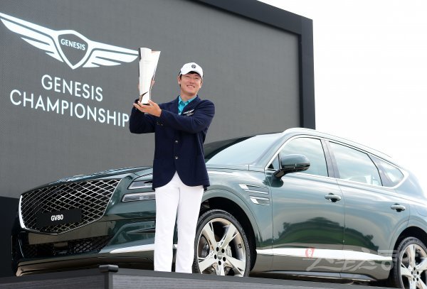 11일 인천 송도 잭 니클라우스CC에서 열린 ‘제네시스 챔피언십(총상금 15억원)’ 최종 라운드에 참가한 김태훈이 최종 합계 6언더파를 기록하며 우승한 뒤 기념촬영을 하고 있다.