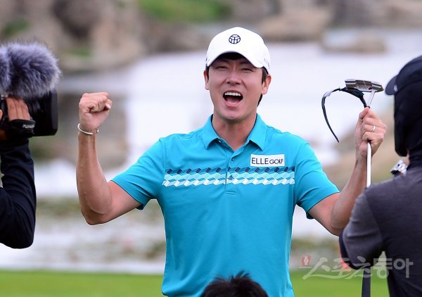 11일 인천 송도 잭 니클라우스CC에서 열린 ‘제네시스 챔피언십(총상금 15억원)’ 최종 라운드에 참가한 김태훈이 최종 합계 6언더파를 기록하며 우승한 뒤 포효하고 있다.