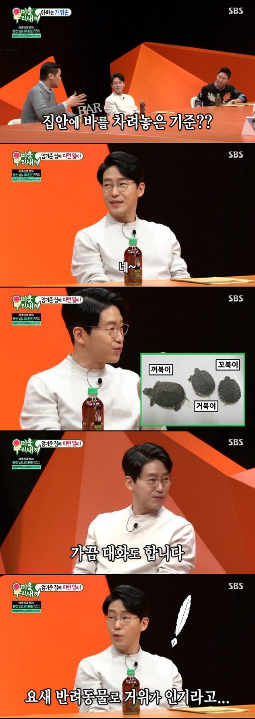 또한 거북이 세 마리를 키우고 있다는 엄기준은 “이름이 꺼복이, 거북이, 꼬북이다”라고 말해 웃음을 자아냈다.