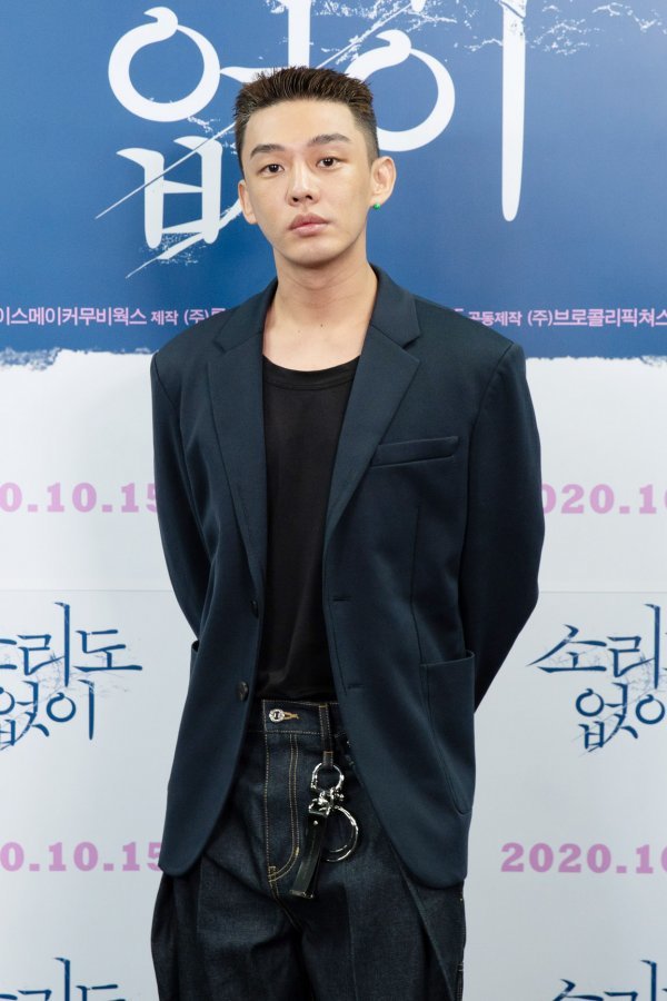 배우 유아인이 12일 오후 영화 \'소리도 없이\' 온라인 기자간담회에 참석해 포즈를 취하고 있다.