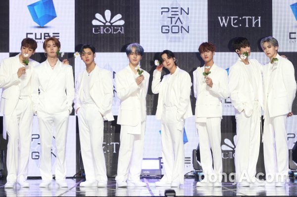 12일 오후 4시 온라인을 통해 생중계된 새 미니앨범 ‘WE:TH’(위드) 쇼케이스. 이날 펜타곤은 새 앨범의 타이틀곡 ‘데이지’의 무대를 선보이고 취재진과의 질의응답을 가졌다.