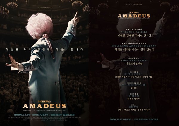 올 연말, 깊은 공감과 강렬한 여운으로 다시 한번 감동의 무대를 선사할 연극 ‘아마데우스’는 2020년 11월 17일부터 2021년 1월 17일까지 광림아트센터 BBCH홀에서 공연되며, 10월 22일 인터파크와 YES24에서 프리뷰 티켓 오픈이 진행될 예정이다.