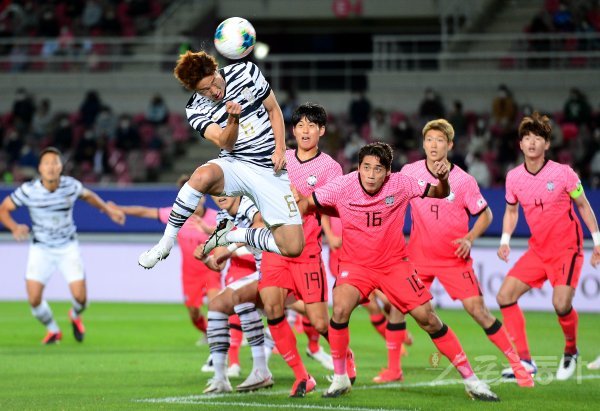 12일 경기도 고양종합운동장에서 ‘2020 하나은행컵 축구국가대표팀과 올림픽축구대표팀의 평가전 경기가 열렸다.