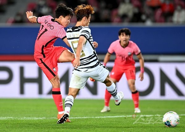 12일 경기도 고양종합운동장에서 ‘2020 하나은행컵 축구국가대표팀과 올림픽축구대표팀의 평가전 경기가 열렸다.