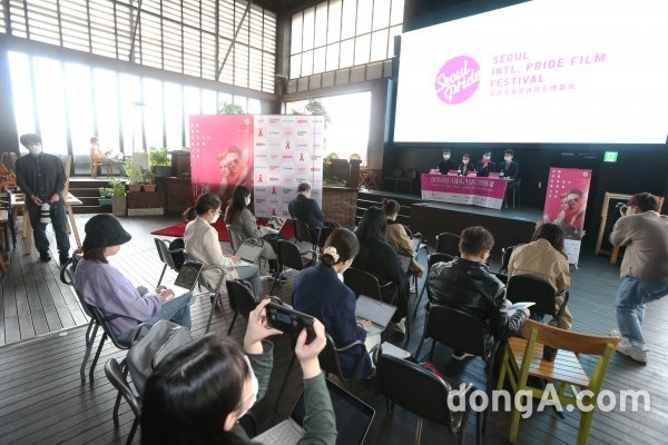 13일 오전 서울 동작구 아트나인에서 열린 \'서울국제프라이드영화제 2020\' 기자간담회에서 관계자들이 참석해 인사말을 하고 있다.