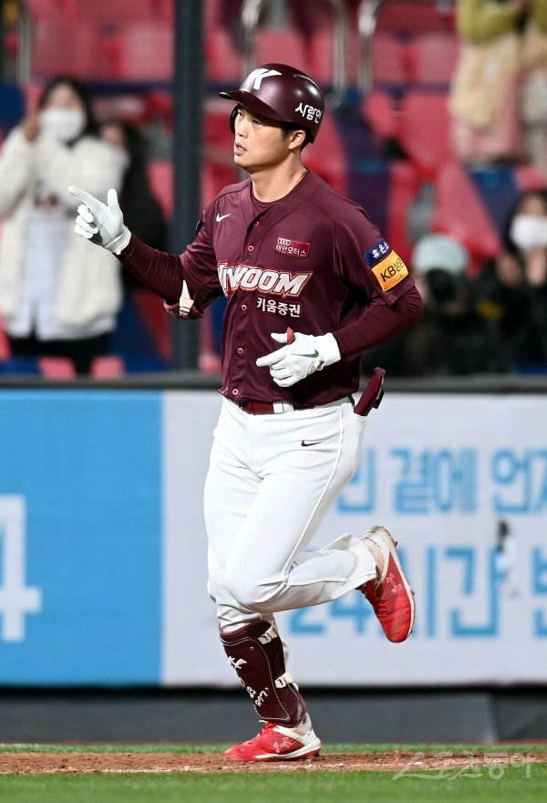 7회초 1사 키움 박준태가 우월 솔로 홈런을 날린 후 그라운드를 돌고 있다.