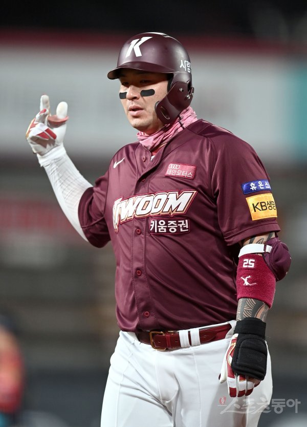 6회초 무사 1루 키움 박병호가 좌전 안타를 치고 1루에서 기뻐하고 있다.