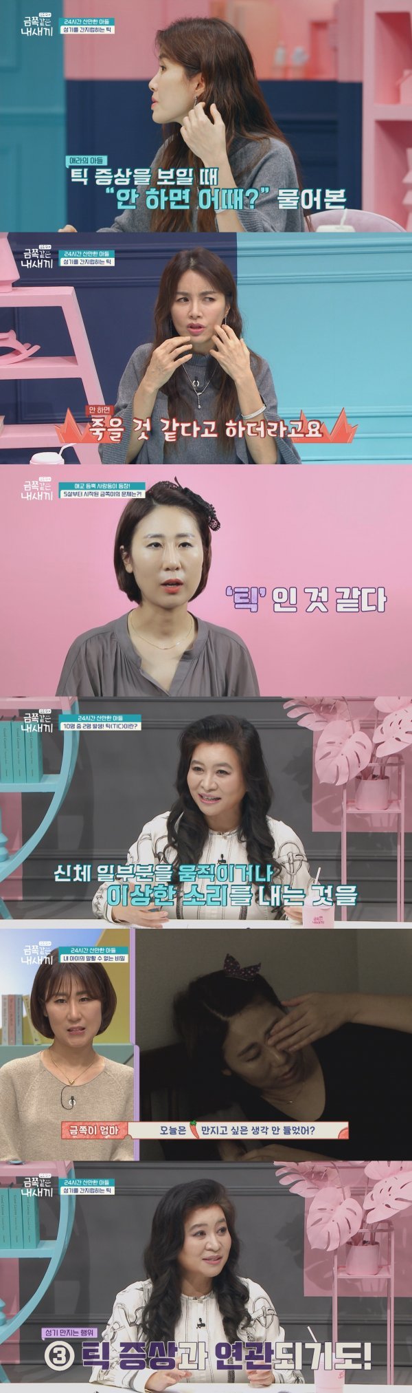 해당 영상을 보던 신애라는 “우리 아들도 틱이 있어서 걱정되는 마음에 병원까지 찾아갔었는데, 시간이 지나면서 사라졌지만 (당시에) 틱을 참으면 답답해 죽을 것 같다고 하더라”며 아들과의 경험담을 털어놓았고, 힘들어하는 엄마의 마음을 어루만져준다.
