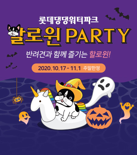 김해 롯데워터파크(대표 최홍훈)가 할로윈 시즌을 맞아 17일부터 11월1일까지 ‘댕댕파크 할로윈 파티’를 진행한다. 행사 기간 동안 매주 주말에 야외 펫존(VIP빌라+포레스트존)에서 반려견을 위한 다양한 할로윈 프로그램을 진행한다.롯데워터파크는 9월 야외에 반려견을 위한 놀이터와 샤워시설 등이 구비된 반려견 동반 워터파크 존 ‘댕댕파크’를 조성했다. 높이 21m의 수상놀이터 자이언트 아쿠아 플렉스의 수심을 30여cm로 조절해 반려견과 견주가 함께 물놀이를 즐길 수 있도록 했다. 아울러 워터파크 내 VIP빌라의 정원에 반려견이 뛰어놀 수 있는 공간도 마련했다.