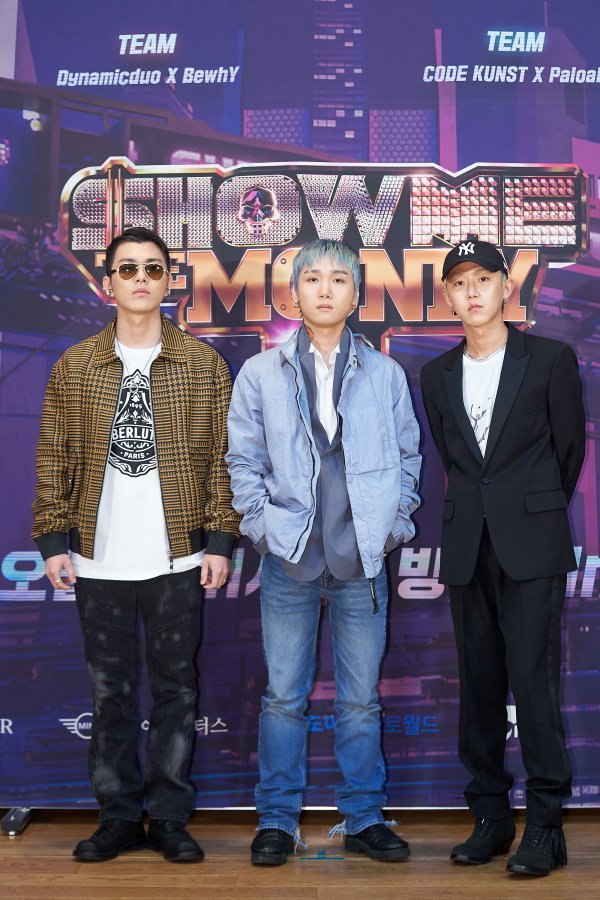 저스디스와 그루비룸이 16일 오후 Mnet 예능 프로그램 래퍼 서바이벌 \'쇼미더머니9\' 온라인 제작발표회에 참석해 포즈를 취하고 있다.
