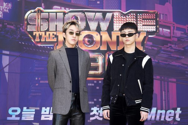 자이언티(왼쪽)와 기리보이가 16일 오후 Mnet 예능 프로그램 래퍼 서바이벌 \'쇼미더머니9\' 온라인 제작발표회에 참석해 포즈를 취하고 있다.