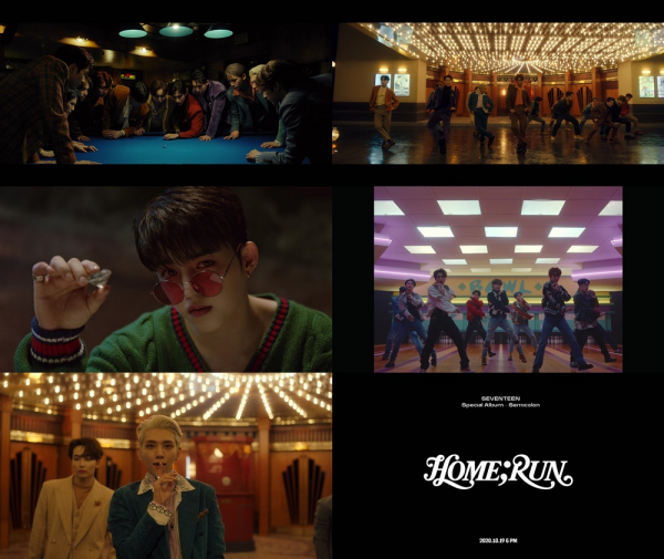 ‘HOME;RUN’ 뮤직비디오 2차 티저 영상은 세븐틴이 모두 모여 하나의 다이아몬드를 유심히 바라보는 모습으로 막을 올렸으며, 형형색색의 슈트로 스타일링한 세븐틴은 한층 짙어진 청춘 감성을 자아내 등장과 동시에 보는 이들의 마음을 사로잡았다.