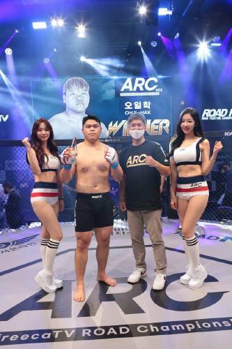 로드FC와 아프리카TV가 공동 개최하는 ARC 003 대회가 17일 잠실 롯데월드 핫식스 아프리카 콜로세움에서 열렸다. 이날 메인이벤트를 장식한 오일학(18·팀 스트롱울프)은 김은수(37·위너스 멀티짐/팀 루츠)를 상대로 1라운드 7초 만에 KO 승리를 거뒀다.
