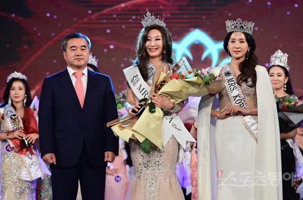 17일 서울 광진구 광장동 워커힐 서울에서 열린 ‘제1회 2020 미시즈 코리아’ 선발대회에서 클래식 부문 진으로 선정된 추미정이 스포츠동아 이인철 대표와 기념 촬영을 하고 있다. ‘미시즈 코리아(Mrs. Korea)‘는 기혼자 및 결혼경험이 있는 여성을 대상으로 개최되는 선발대회로 선발된 미인은 미시즈 부문 세계 1위 월드대회인 ’미시즈 글로브(Mrs. Globe)‘와 ’미시즈 글로브 클래식(Mrs. Globe Classique)‘ 대회에 한국 대표로 출전자격이 부여된다.
