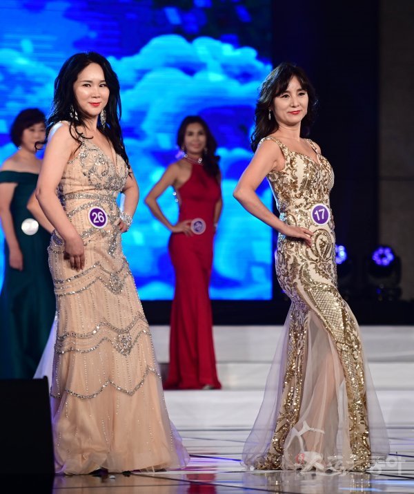 17일 서울 광진구 광장동 워커힐 서울에서 열린 ‘제1회 2020 미시즈 코리아’ 선발대회에서 클래식 부문 기호 26번 배소영과 클래식 부문 기호 17번 장은나가 드레스 퍼레이드를 하고 있다. ‘미시즈 코리아(Mrs. Korea)‘는 기혼자 및 결혼경험이 있는 여성을 대상으로 개최되는 선발대회로 선발된 미인은 미시즈 부문 세계 1위 월드대회인 ’미시즈 글로브(Mrs. Globe)‘와 ’미시즈 글로브 클래식(Mrs. Globe Classique)‘ 대회에 한국 대표로 출전자격이 부여된다.