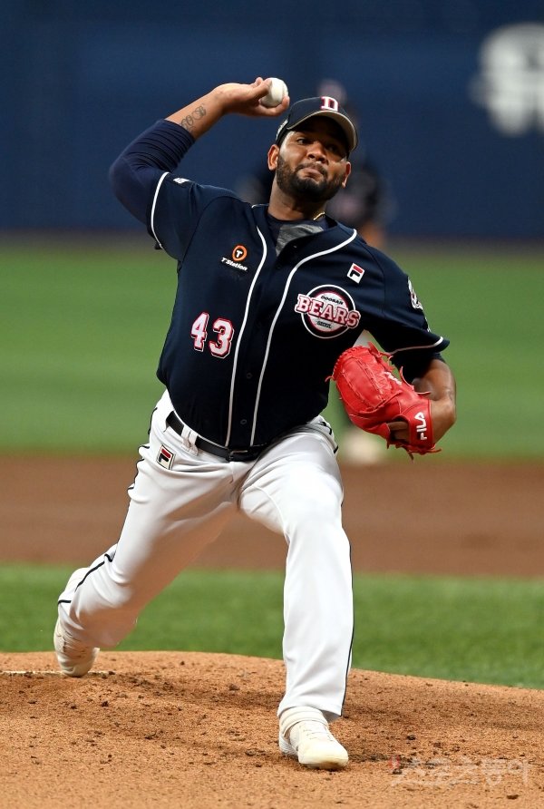 18일 서울 고척스카이돔에서 ‘2020 신한은행 SOL KBO 리그’ 두산 베어스와 키움 히어로즈 경기가 열렸다. 선발 투수로 등판한 두산 알칸타라가 역투하고 있다.