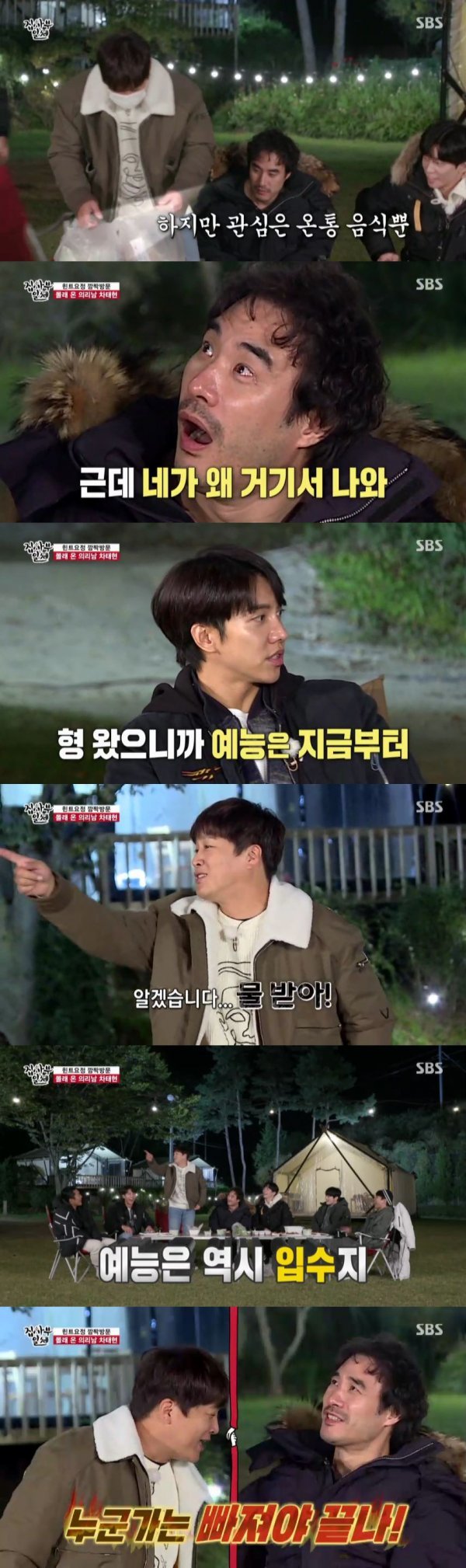 이날 배성우와 멤버들은 캠핑을 떠났다. 그곳에서 멤버들은 라면 미식회를 시작했다. 이승기는 배성우에게 “라면의 신, 배실이 언니 라면 비법을 소개해달라”라며 부담을 줬다. 이어 이승기는 갈비 라면을, 양세형은 오징어 비빔라면을 만들기 시작했다. “원작자 의도에 가까운 라면이 가장 맛있다고 생각한다”라던 배성우는 이승기가 준비한 갈비의 맛에 촬영 이래 가장 큰 ‘진짜 리액션’을 보였고 “기본 라면보다 갈비 라면이 더 맛있을 것 같다”라며 소신을 철회해 웃음을 안겼다.